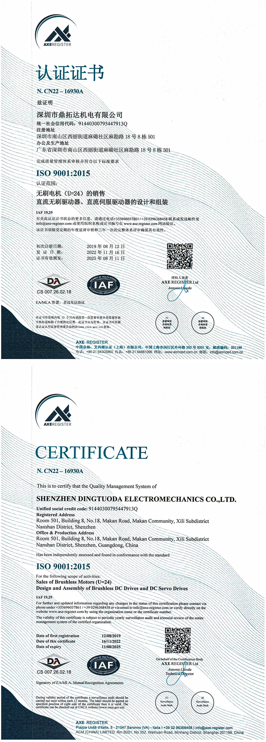 ISO9001認證證書