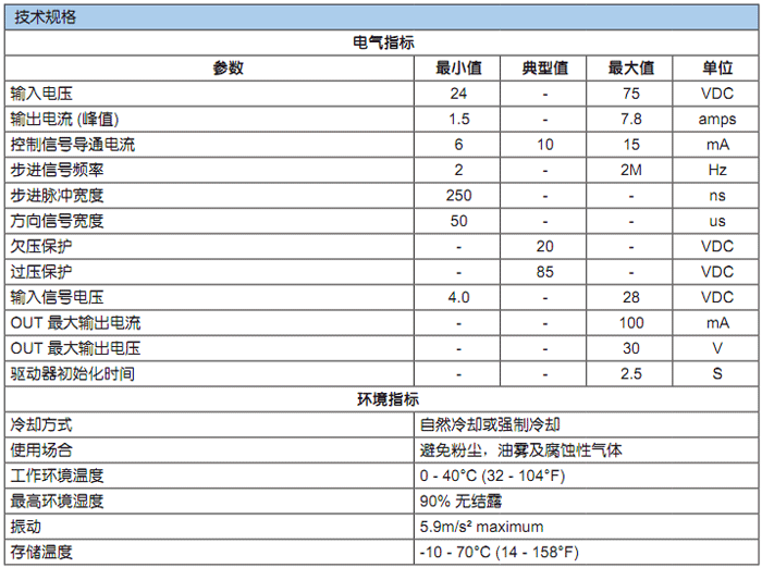 ? 3個數字輸入口:脈沖/方向/使能信號, 5-24VDC, 光電隔離