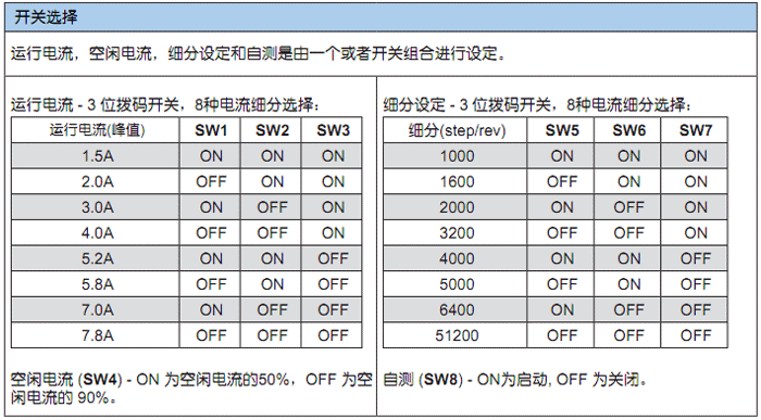 ? 8檔細分, 撥碼開關選擇