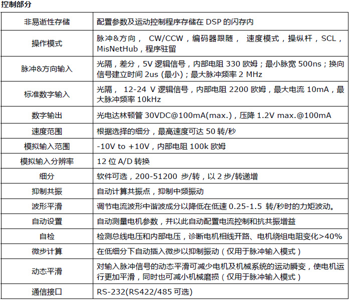 - 命令控制模式。通過RS-232(RS-422/485 可選)串口通信接收運動控制命令,實現實時控制。