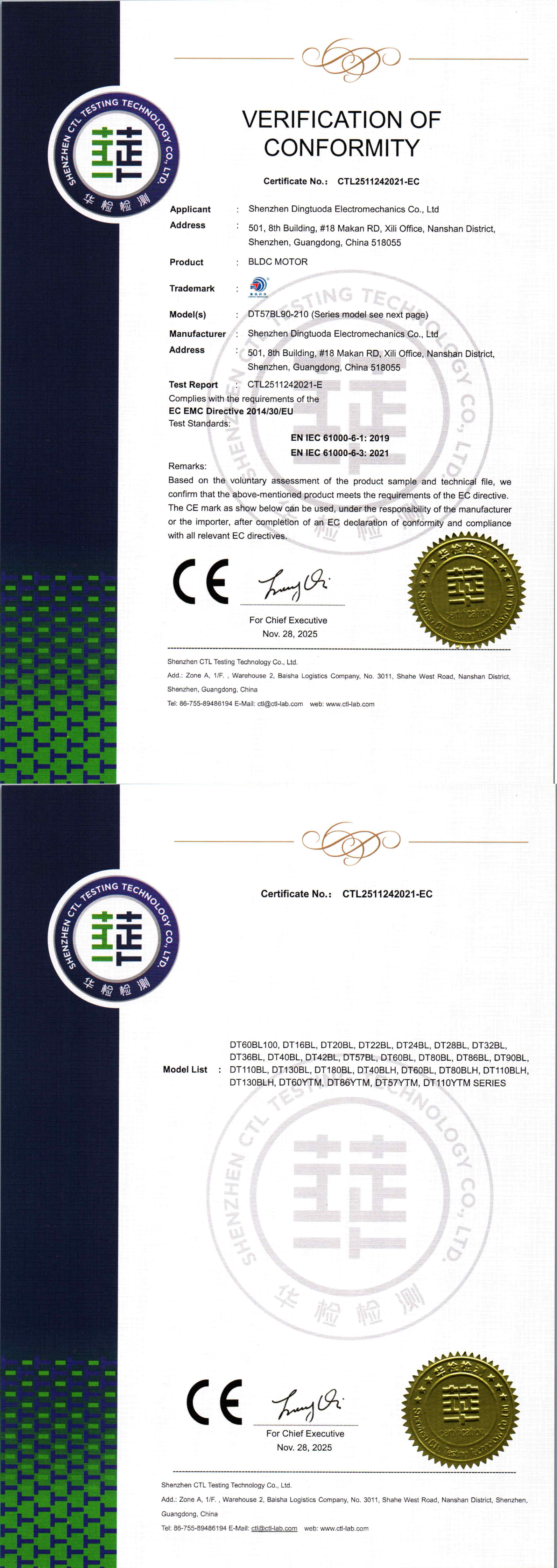 首頁->產品認證->無刷電機和一體機CE認證證書