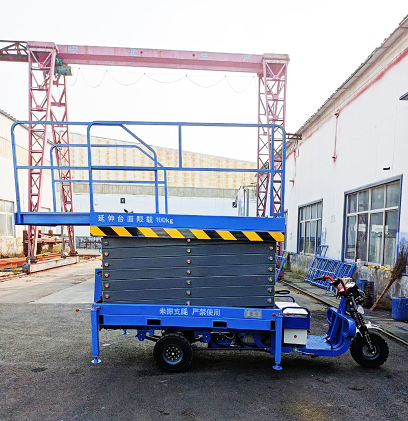 舉升機(jī)構(gòu)采用高強(qiáng)度錳鋼鉅形管制作。設(shè)有防止升降機(jī)超載的安全保護(hù)裝置。設(shè)有防止液壓管路破裂的安全保護(hù)閥。設(shè)有停電情況下的應(yīng)急下降裝置。該產(chǎn)品適用于各行業(yè)高空設(shè)備安裝、檢修等可移動(dòng)性高空作業(yè)。根據(jù)不同要求可選擇不同動(dòng)力形式(如:三相交流電源、單相交流電源、直流電源和內(nèi)燃動(dòng)力等),加配上手動(dòng)液壓裝置,可在停電或無(wú)電源場(chǎng)所照常升降工作,并可加伸縮平臺(tái),在平臺(tái)長(zhǎng)度不足時(shí)可延伸至所需位置,從而提高工作效率。是現(xiàn)代高大建筑、設(shè)備之理想配備產(chǎn)品,是高空安全文明生產(chǎn)之必備。